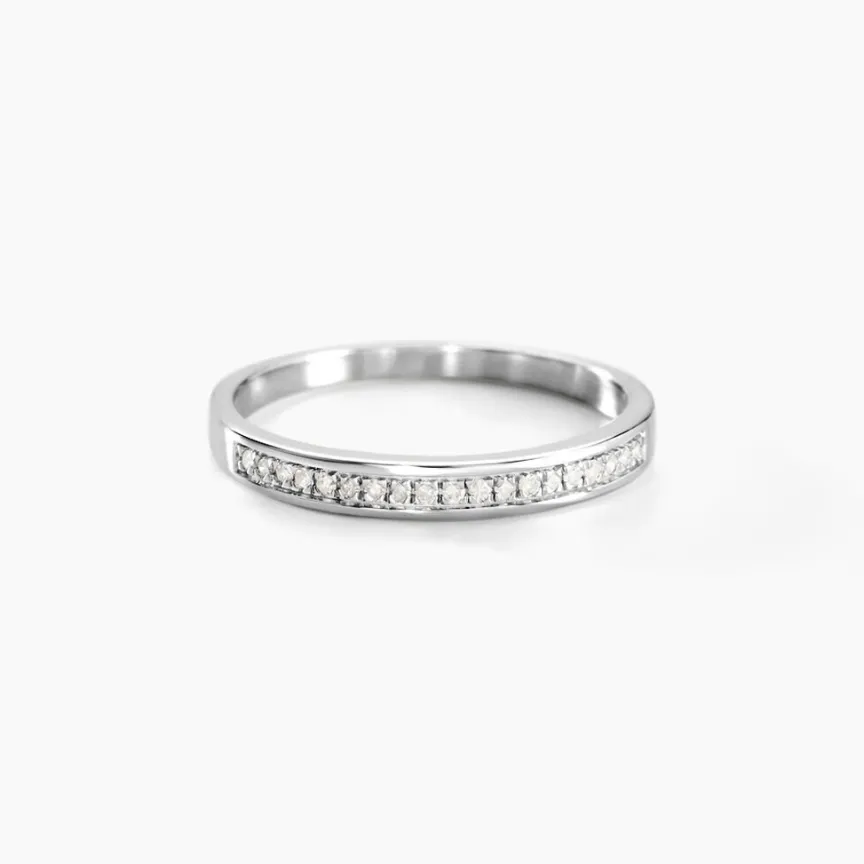 Demi Alliance Or Blanc 375/1000 Anneau Avec Pavage Simple Diamants 0.08cts
