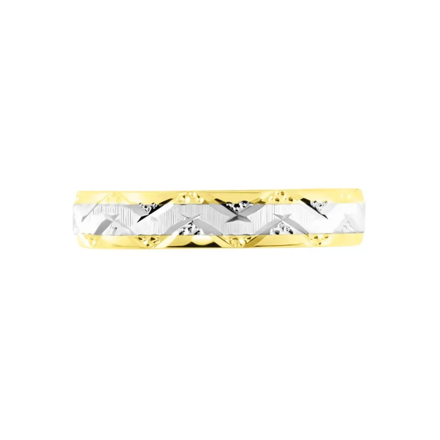 Alliance Or Bicolore Jaune Et Blanc 750/1000 Motifs Vagues Fantaisies 4mm
