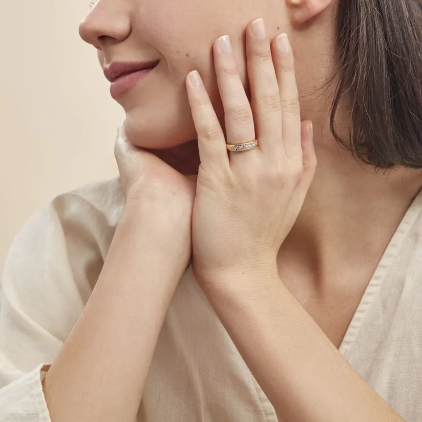 Demi-alliance Or Jaune 750/1000 Diamants 0.72cts Sertis Rail