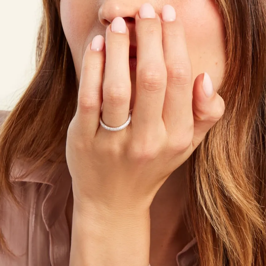 Demi Alliance Or Blanc 375/1000 Pavage Diamants 0.27cts