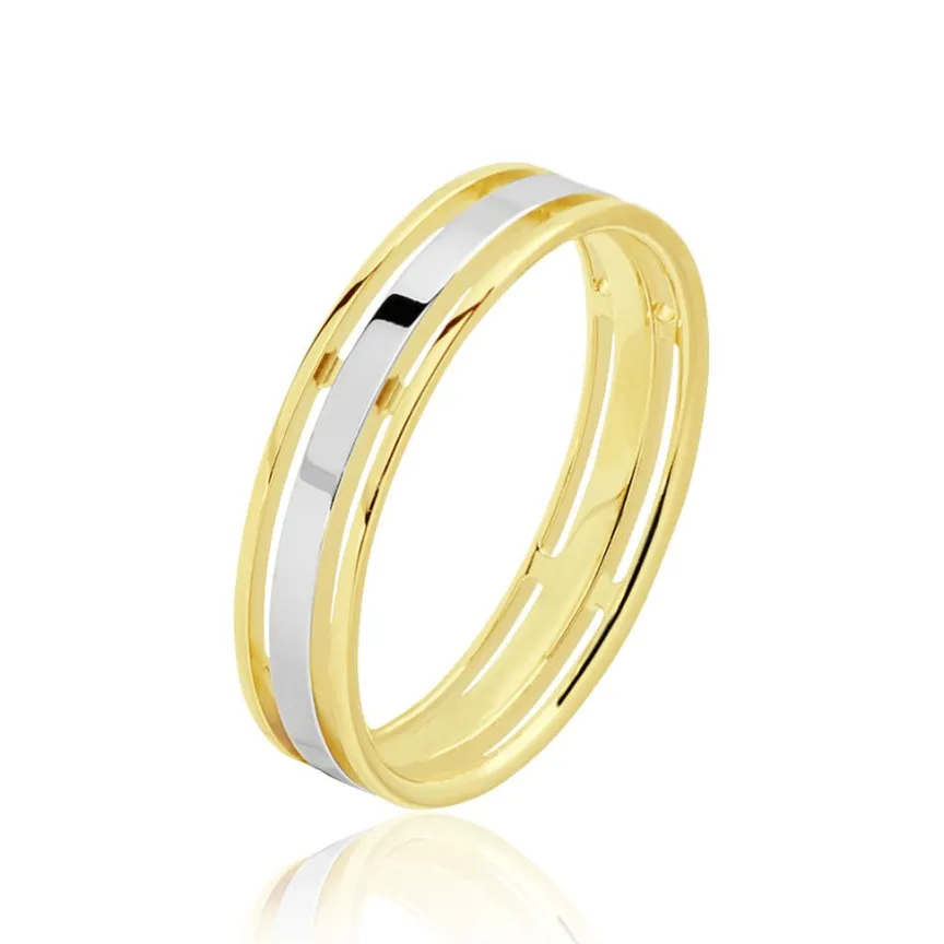 Alliance Or Bicolore 750/1000 Blanc Et Jaune Ruban 5mm
