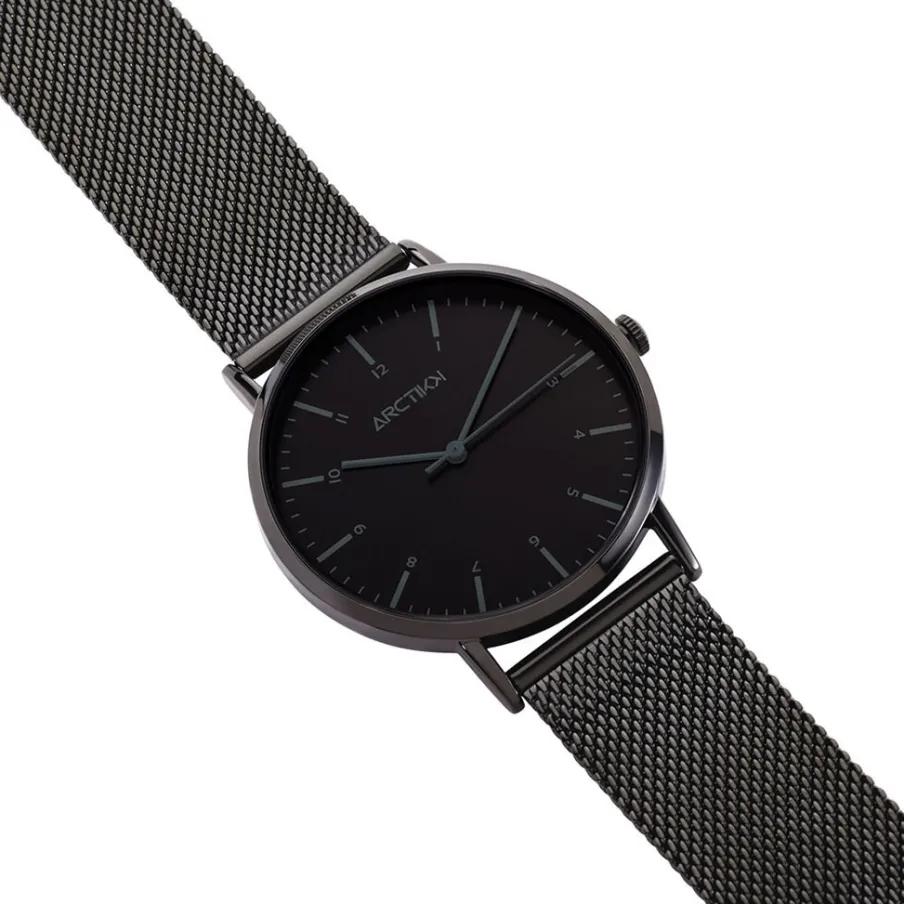 Coffret De Montre Arctik Solstice Alliage Noir Quartz Ronde 40mm Fond Noir Bracelet Milanais Acier Noir + Bracelet Empierre P101102-g