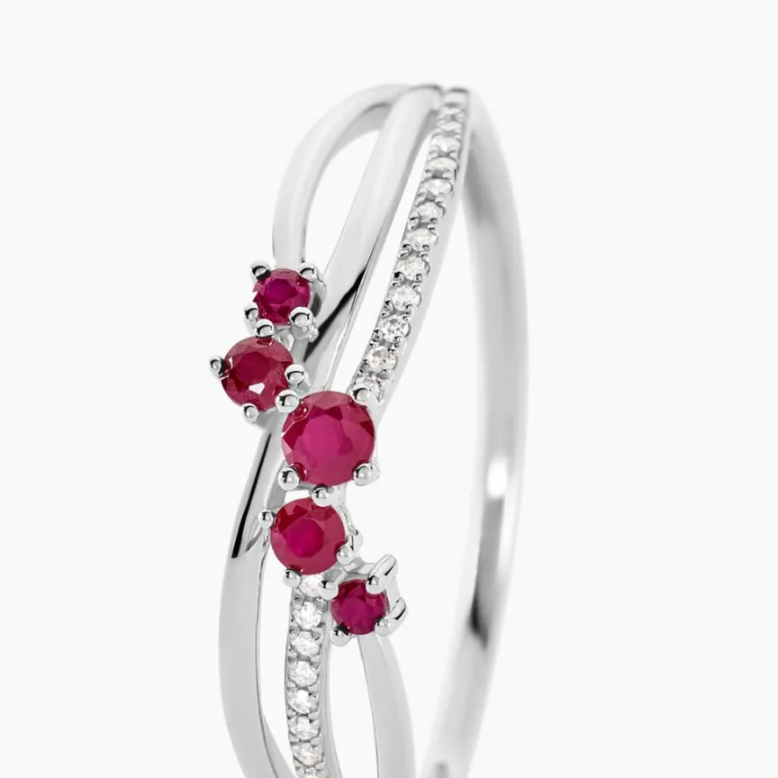 Bague Or Blanc 375/1000 Amarylis Rubis Et Diamants