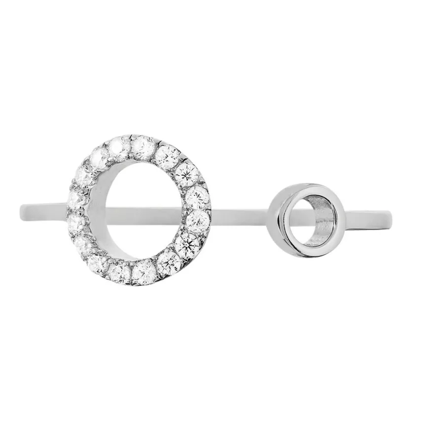 Bague Argent Blanc 925/1000 Ouverte Cercles Oxydes De Zirconium