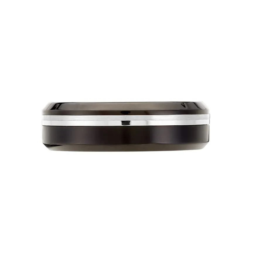 Bague Acier Inoxydable Bicolore Blanc Et Noir