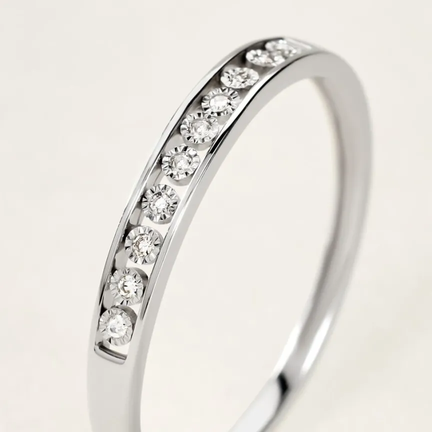 Alliance Or Blanc 375/1000 Diamants Pastille 0.04cts Serti Rail