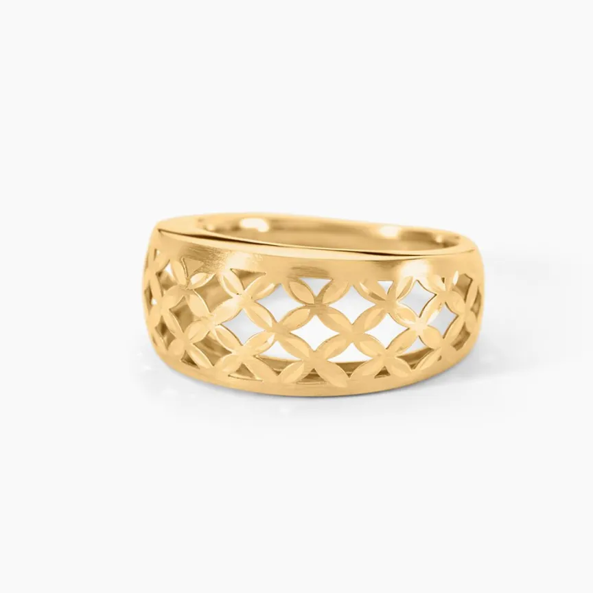 Bague Or Jaune 750/1000 Motif Quadrillage Ajoure Effet Diamante