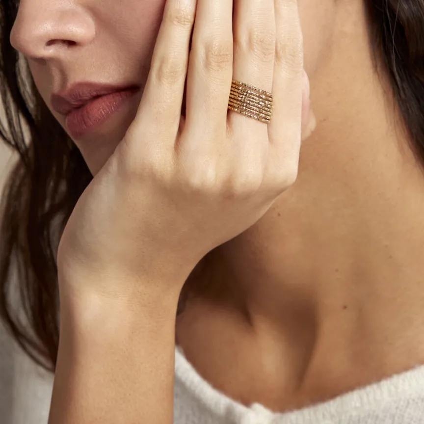 Bague Acier Inoxydable Jaune Multirangs Diamantes