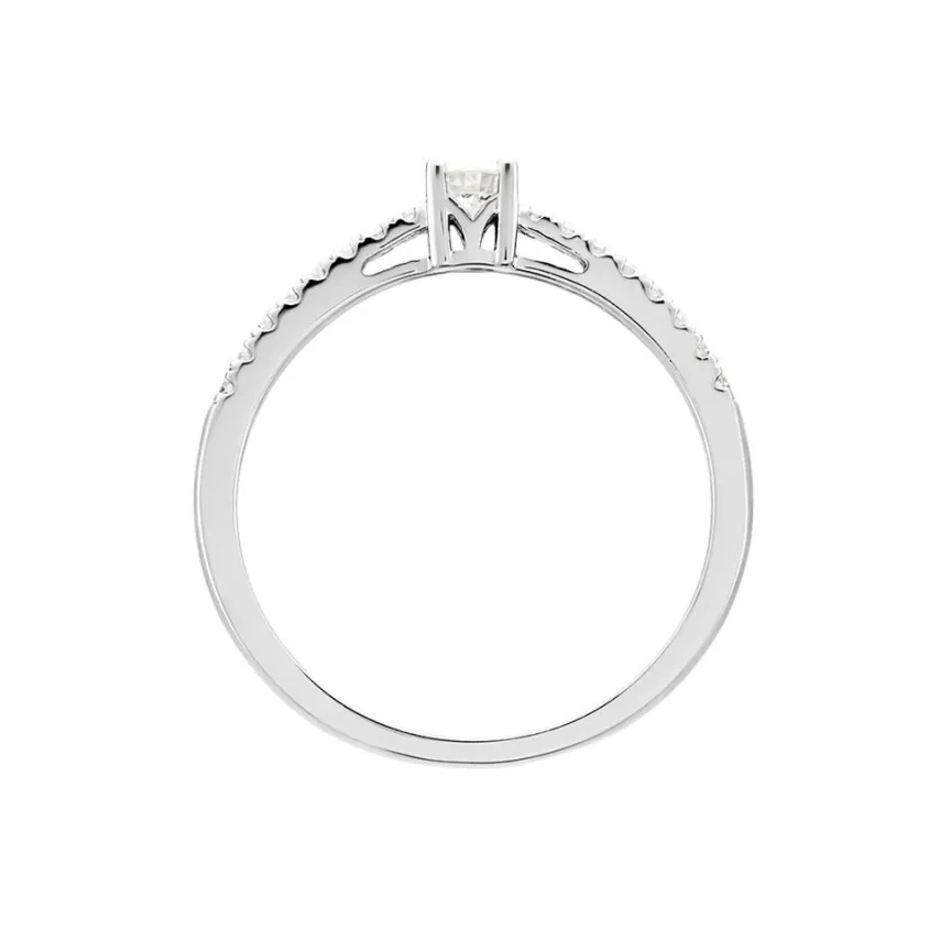 Solitaire Or Blanc 750/1000 Diamant 0.20cts Accompagne Diamants