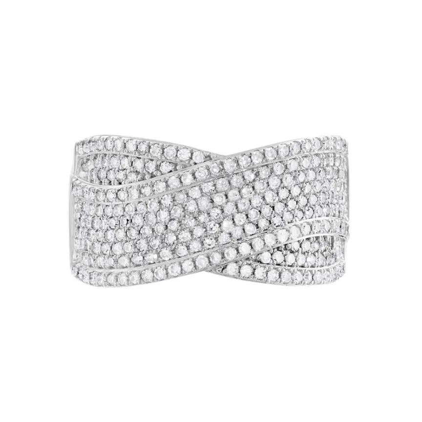 Bague Or Blanc 750/1000 Pavage Diamants Blancs Forme Ruban