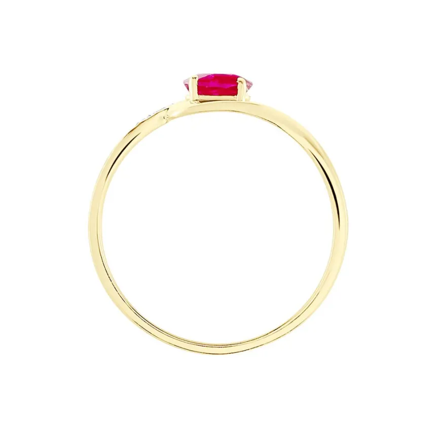 Bague Goutte Or Jaune 375/1000 Oval Serti Griffes Rubis 0.3ct