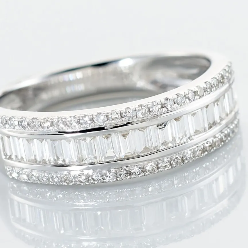 Bague Or Blanc 750/1000 Pm Diamants Baguettes 0.40cts Et Ronds