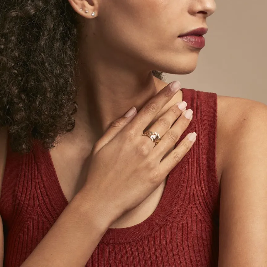 Bague Plaque Or Jaune Forme Feuille Croisee