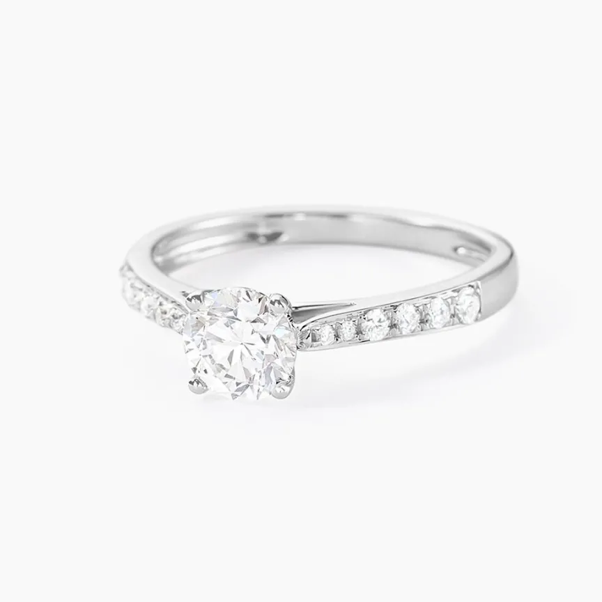 Solitaire Platine 950/1000 Diamant Central Synthetique 0.81Cts Serti Griffes Accompagne Diamants Synthetique