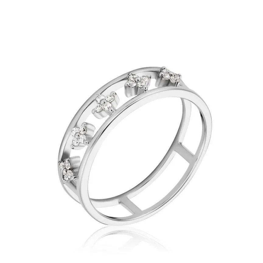 Bague Argent Blanc 925/1000 Fleurs Oxyde De Zirconium Double Rang