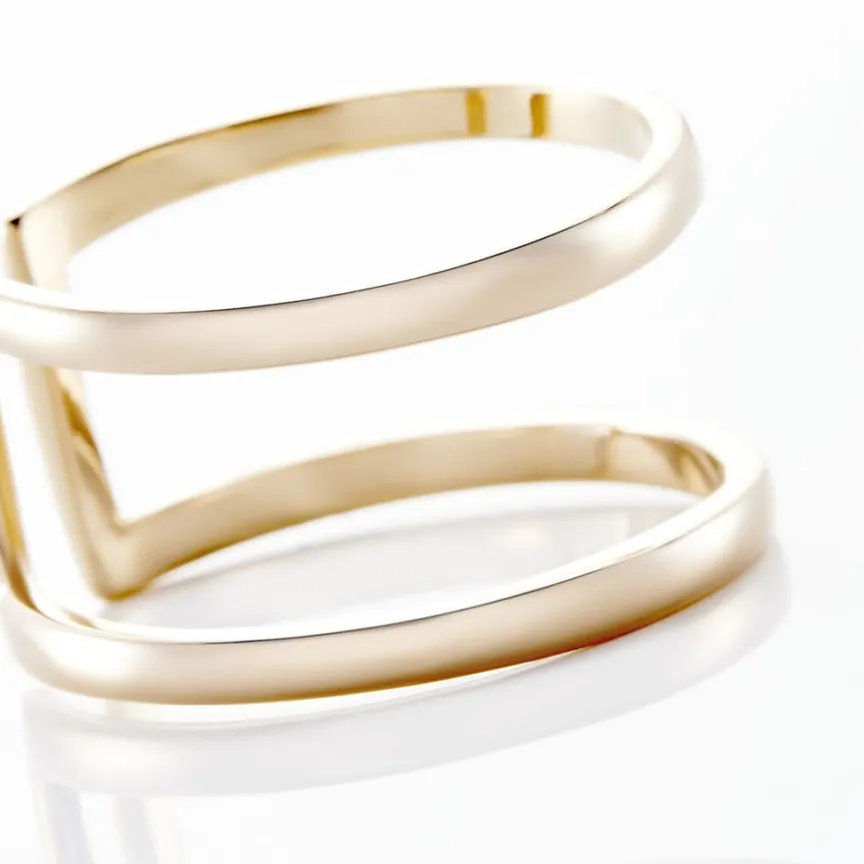Bague Plaque Or Jaune Ouverte Deux Rangs