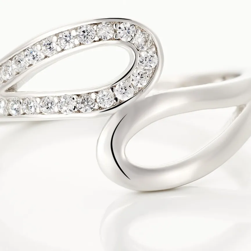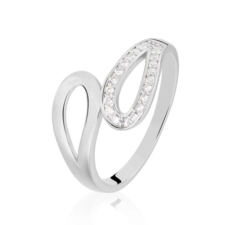 Bague Argent Blanc 925/1000 Entrelace Semi Pavage Oxydes De Zirconium