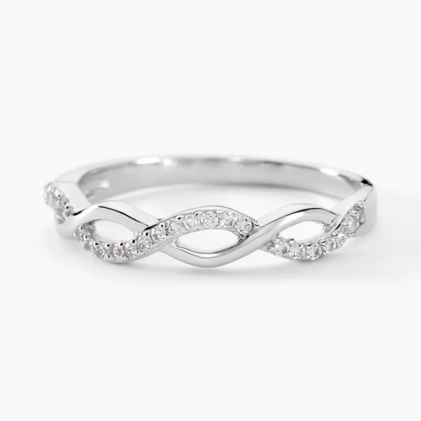 Bague Argent Blanc 925/1000 Tresse Entrelacees Avec Oxydes De Zirconium Micro Serti