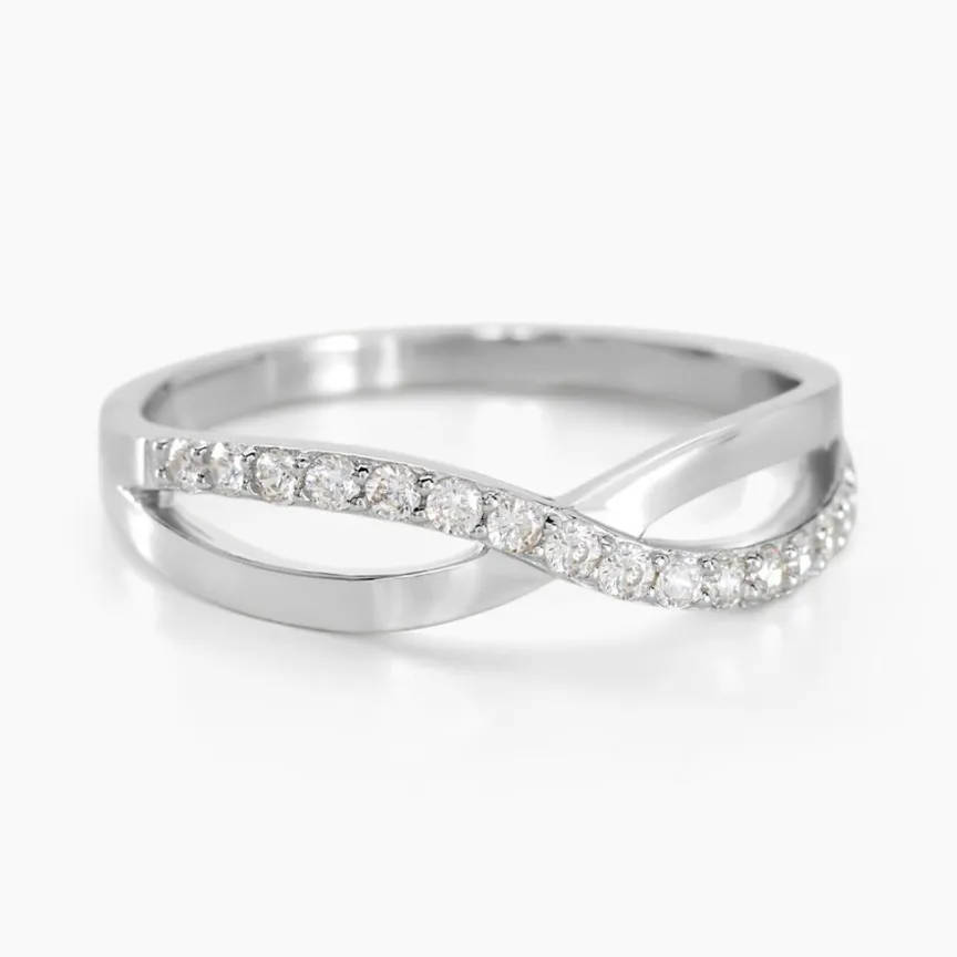 Bague Argent Blanc 925/1000 Croises Oxydes De Zirconium
