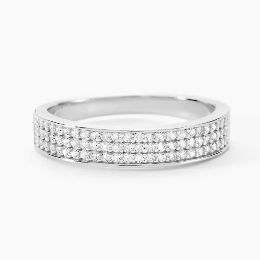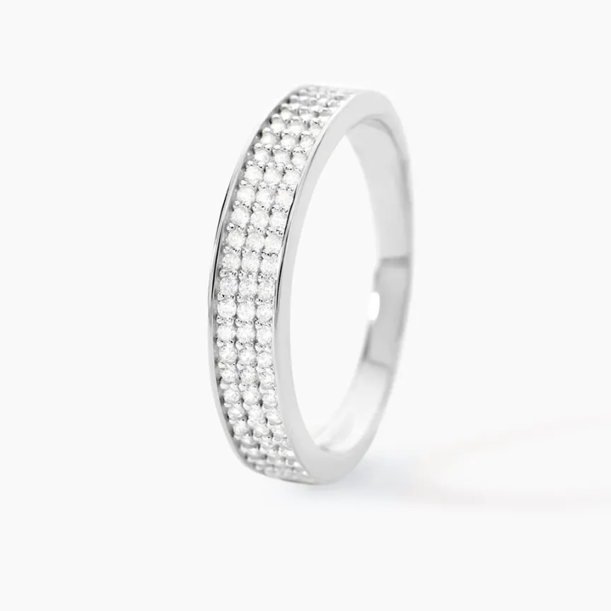 Bague Argent Blanc 925/1000 3 Rangs Demi Tour Pavage Oxydes De Zirconium