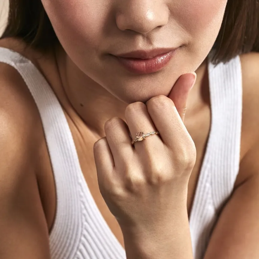 Bague Plaqué Or Jaune Solitaire Oxyde De Zirconium Champagne 4 Griffes Pavage Oxydes De Zirconium