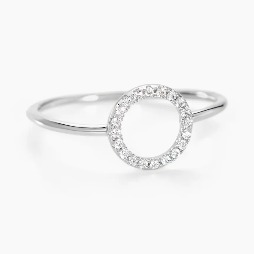 Bague Argent Blanc 925/1000 Forme Cercle Ajoure Pavage Oxydes De Zirconium