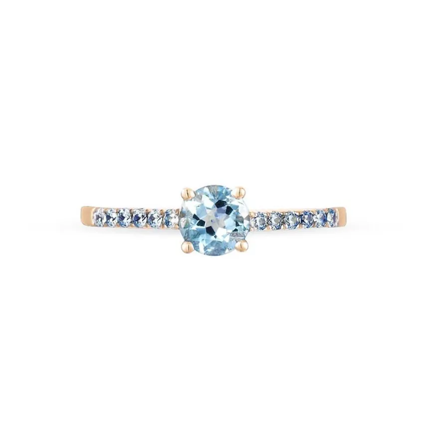 Bague Or Rose 375/1000 Topaze Centrale Accompagnee D’oxydes De Zirconium Bleus