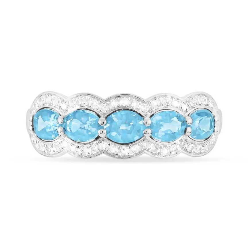 Bague Or Blanc 375/1000 Topazes Bleues Claires Et Diamants
