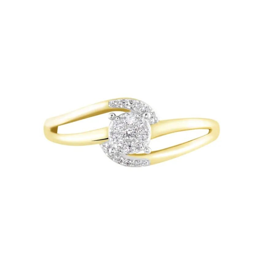 Bague Or Jaune 375/1000 Multipierre Accompagne Vrille Pavage Diamants