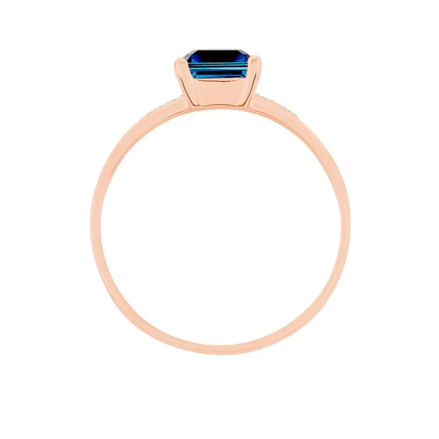 Bague Or Rose 375/1000 Double Rangs Ajoures Topaze London Blue Carree Oxydes De Zirconium