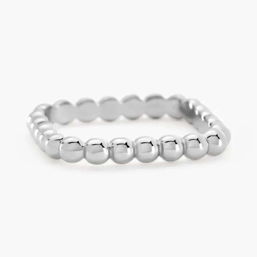 Bague Argent Blanc 925/1000 Forme Carrée Effet Perlé