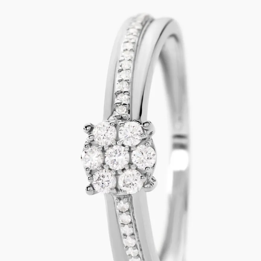 Bague Or Blanc 375/1000 Multipierre Accompagne Vrille Pavage Diamants