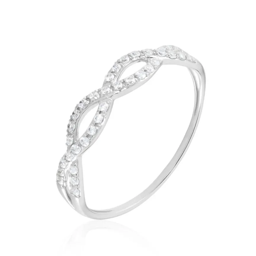 Bague Or Blanc 375/1000 Vague Oxyde De Zirconium Serti Pavage 0.32cts