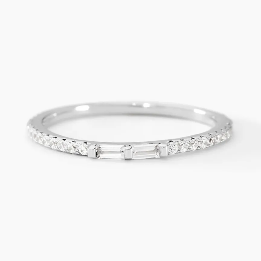 Bague Argent Blanc 925/1000 Duo Oxydes De Zirconium Taille Baguette Et Semi Pavage