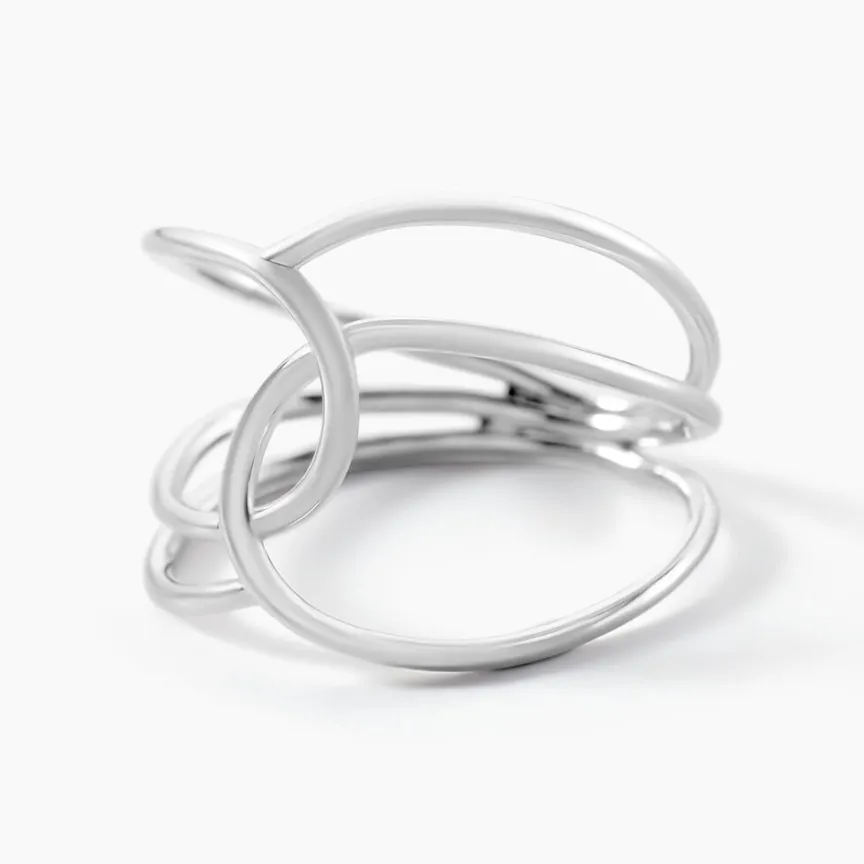 Bague Argent Blanc 925/1000 Entrelacee Multifil Incurve