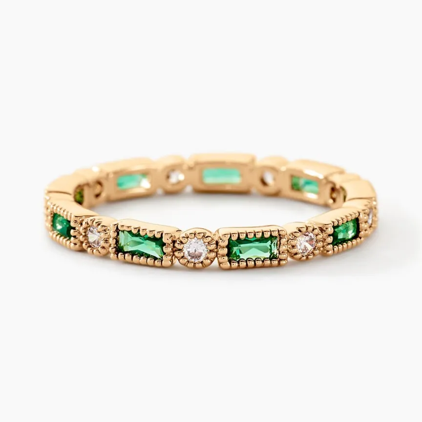 Bague Plaqué Or Oxydes De Zirconium Et Pierres Synthétiques Vertes