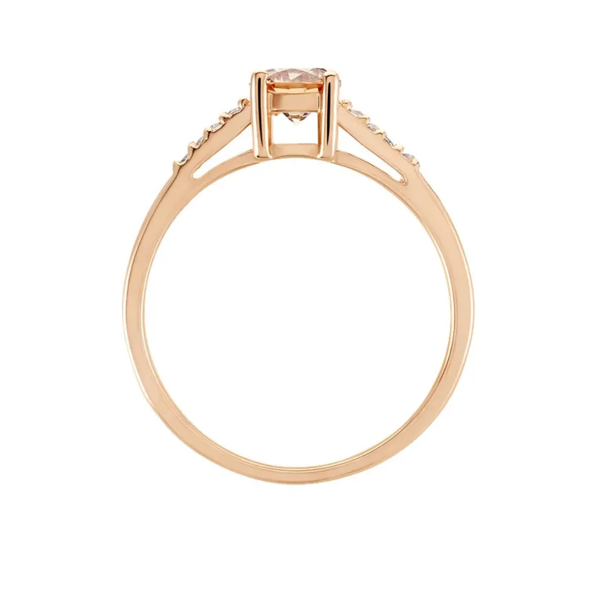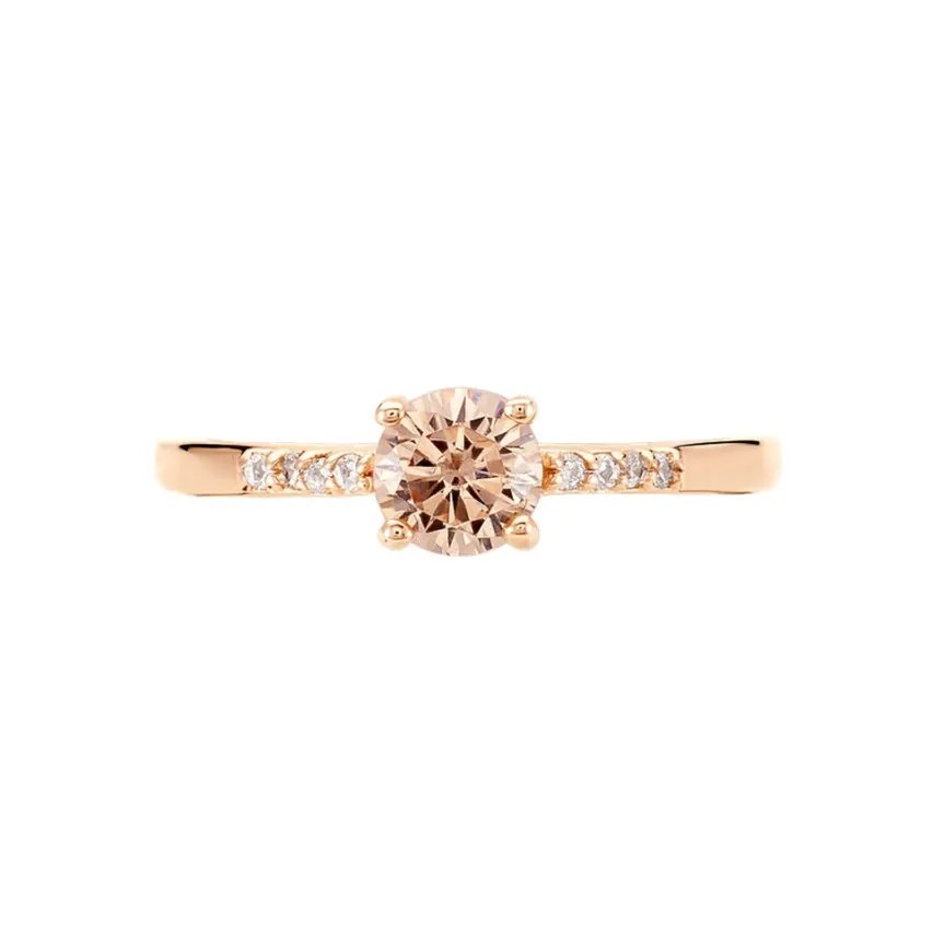 Bague Solitaire Argent Rose 925/1000 Oxyde De Zirconium Champagne Central Accompagné D’oxydes De Zirconiums