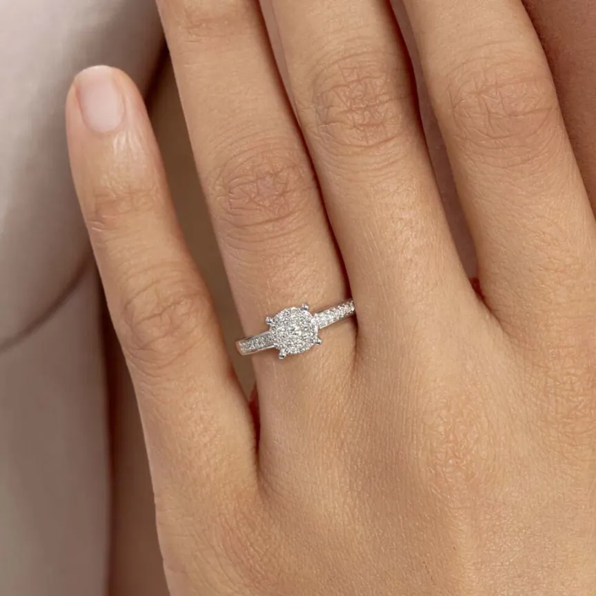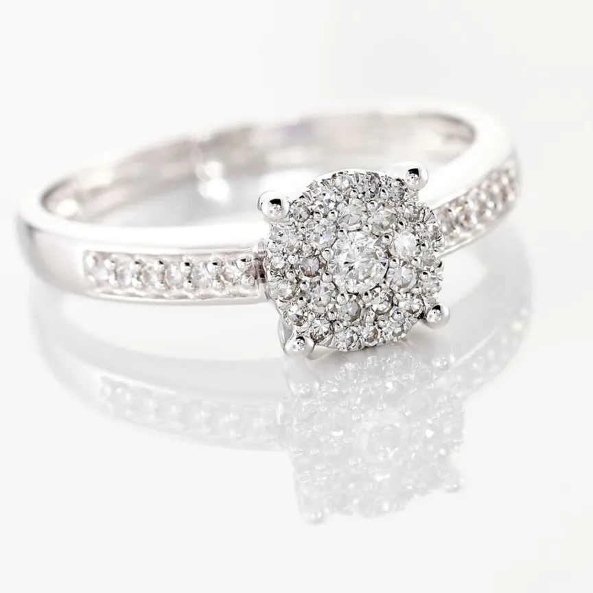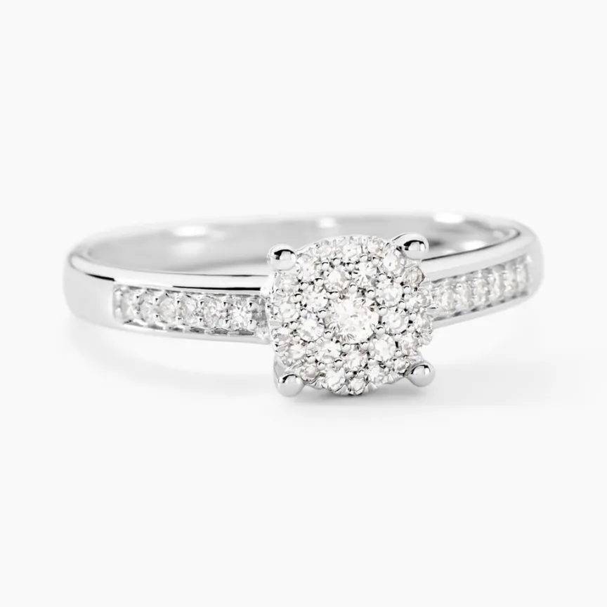 Bague Or Blanc 375/1000 Multipierres Diamants Accompagnée Diamants 0.2cts