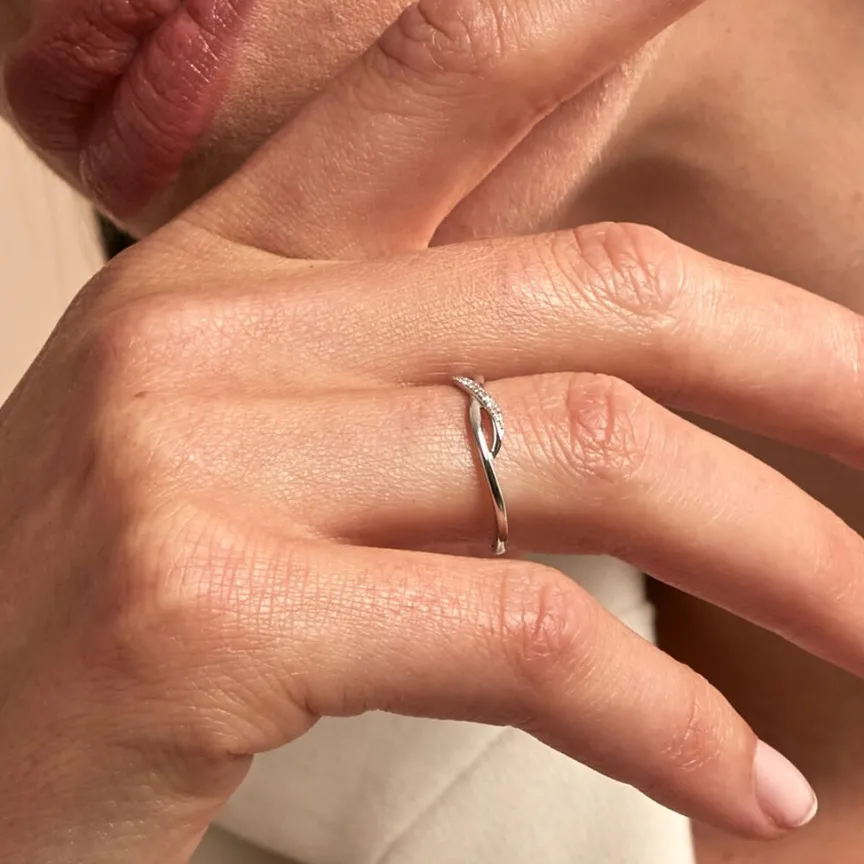 Bague Or Blanc 375/1000 Forme Huit Diamants Ronds 0.026cts Micro Serti