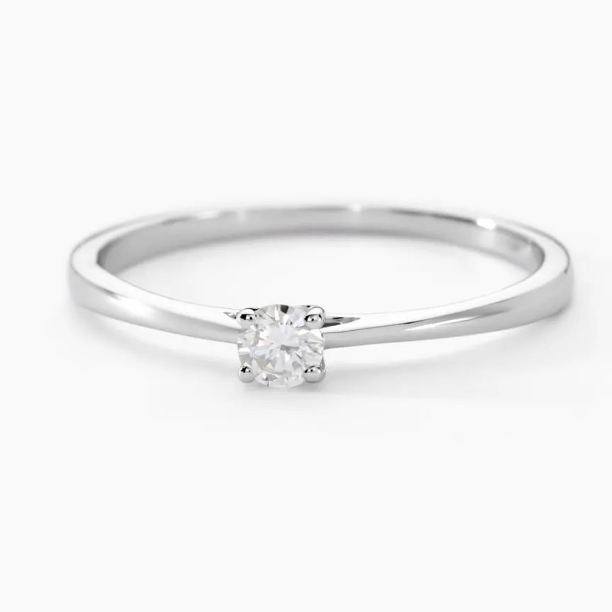 Bague Solitaire Or Blanc 375/1000 Diamant 0.10cts Serti 4 Griffes