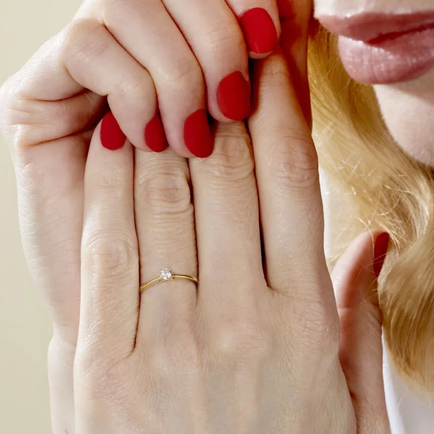 Bague Solitaire Or Jaune 375/1000 victoria Diamant 0.10cts Serti 4 Griffes T46