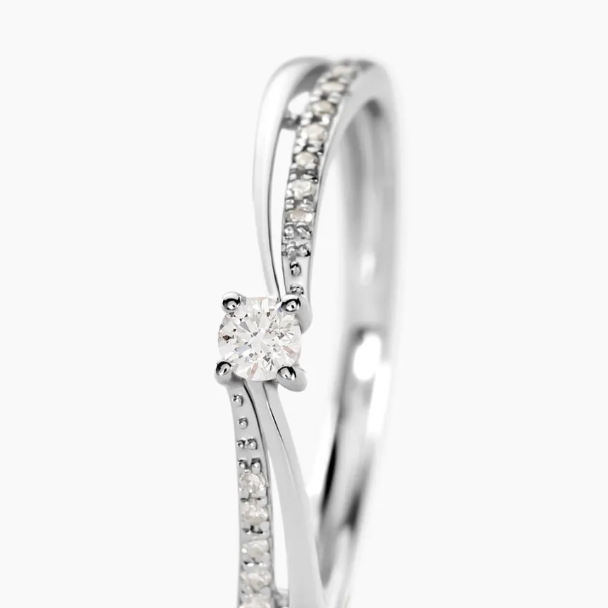 Solitaire Or Blanc 375/1000 Diamant Central 0.05ct Serti 4 Griffes Accompagne Diamants