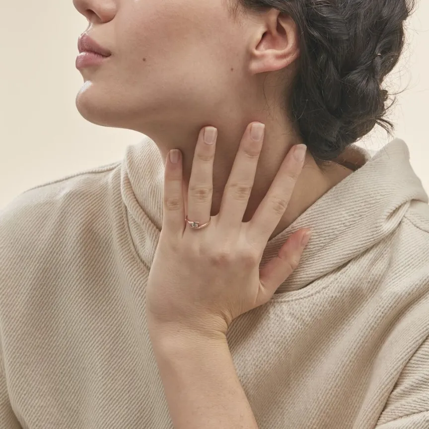 Solitaire Or Rose 375/1000 Forme Couteau Oxyde De Zirconium Central Rond