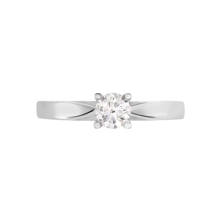 Solitaire Or Blanc 750/1000 Diamant 0.40 Ct Serti 4 Griffes