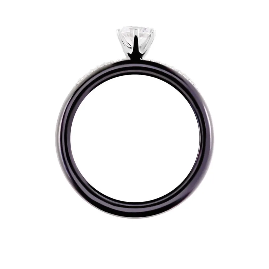 Solitaire Argent Blanc 925/1000 Ceramique Noire Oxydes De Zirconium Gm