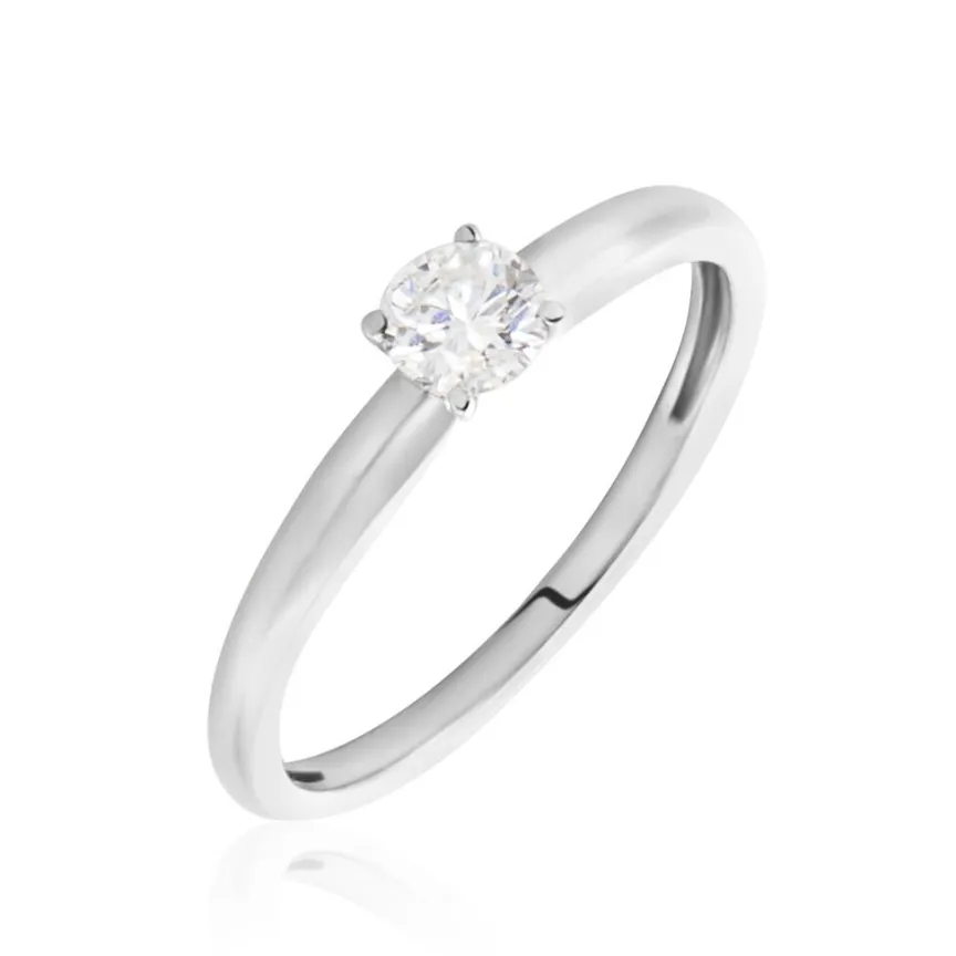 Bague Solitaire Or Blanc 375/1000 Diamant Central 0.25cts Serti 4 Griffes