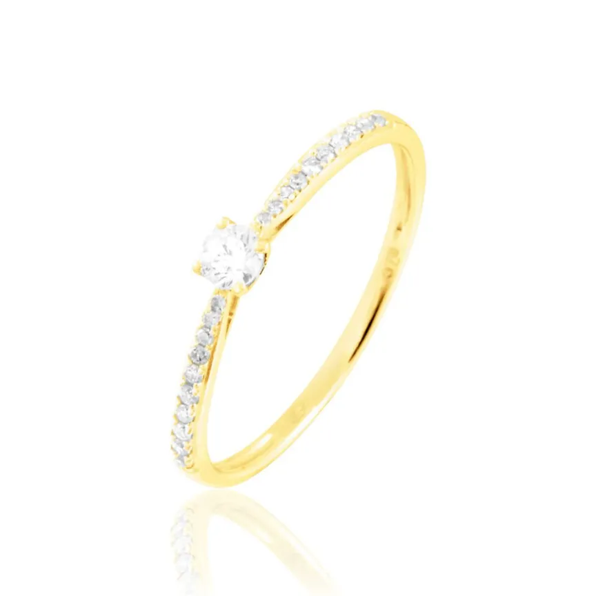 Solitaire Or Jaune 375/1000 Diamant Central 0.10cts Serti Griffes Accompagnes Diamants