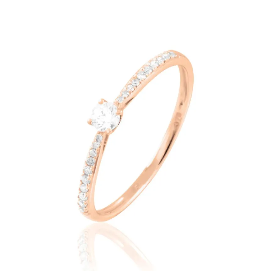 Solitaire Or Rose 375/1000 Diamant Central 0.05cts Serti Griffes Accompagnes Diamants