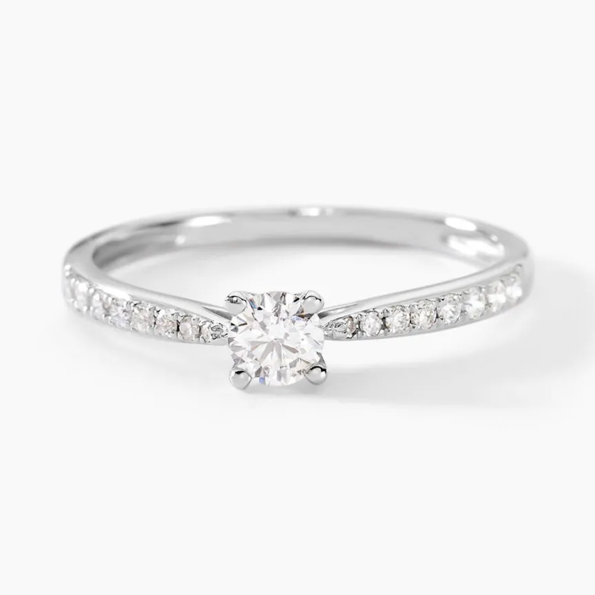 Solitaire Or Blanc 750/1000 Diamant Central 0.2cts Serti Griffes Accompagnes Diamants