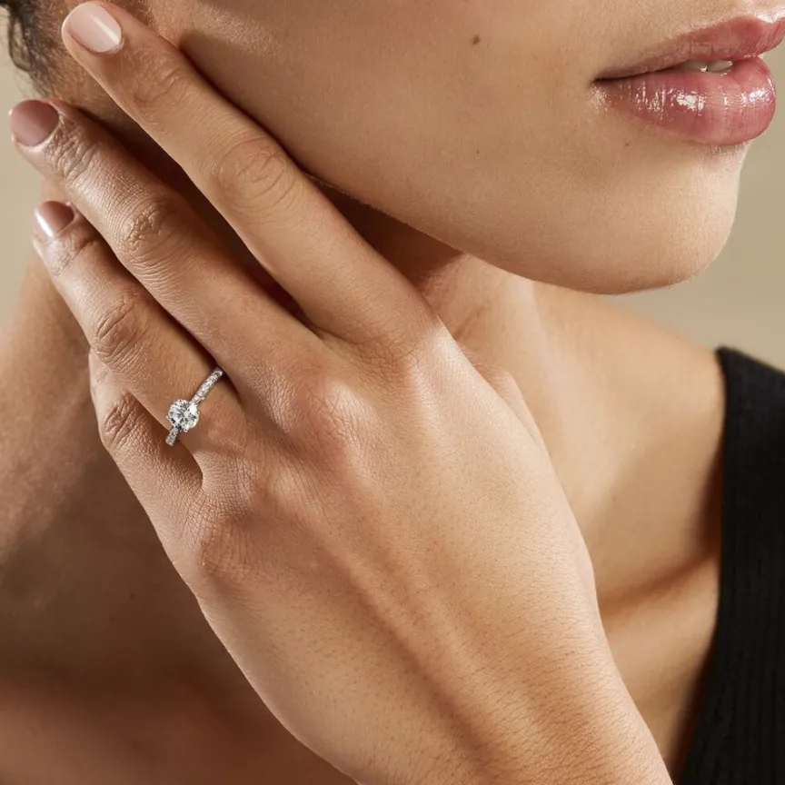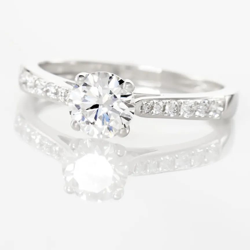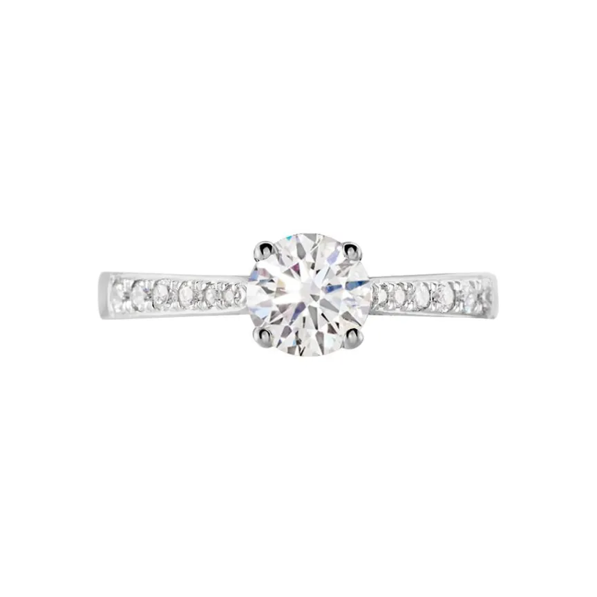 Solitaire Or Blanc 750/1000 Diamant Central Synthetique 0.80cts Serti Griffes Accompagne Diamants Synthetique